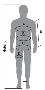 F - Inside leg (cm) | 51-53 | 54-57 | 58-63 | 64-67 | 68-72 |