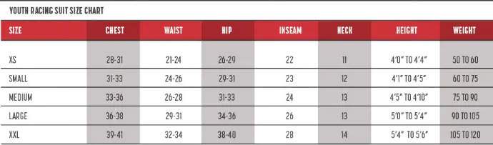 | Custom Racing Suit Measurement Chart Download the custom suit measuring Chart |